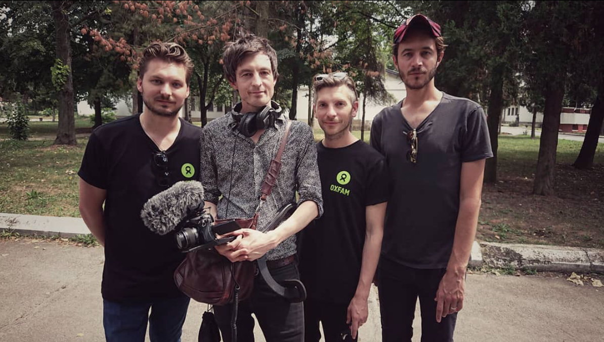 In a Serbian refugee camp with the band Editors, filming for Oxfam GB.